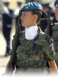 Nos últimos vinte e cinco anos, as Forças Armadas Portuguesas abriram as suas fileiras às mulheres; desde então, tem-se assistido a um contínuo aumento de militares femininos nos três ramos das Forças Armadas. Paralelamente, no sentido da promoção da igualdade de género, tem-se procedido à implementação de mecanismos adequados, que suprimam e evitem as assimetrias e discriminações, de que é exemplo o Plano para a Igualdade do Ministério da Defesa Nacional. O ingresso nas fileiras faz-se pela competência e pelo desempenho e nunca pelo género. [...]
